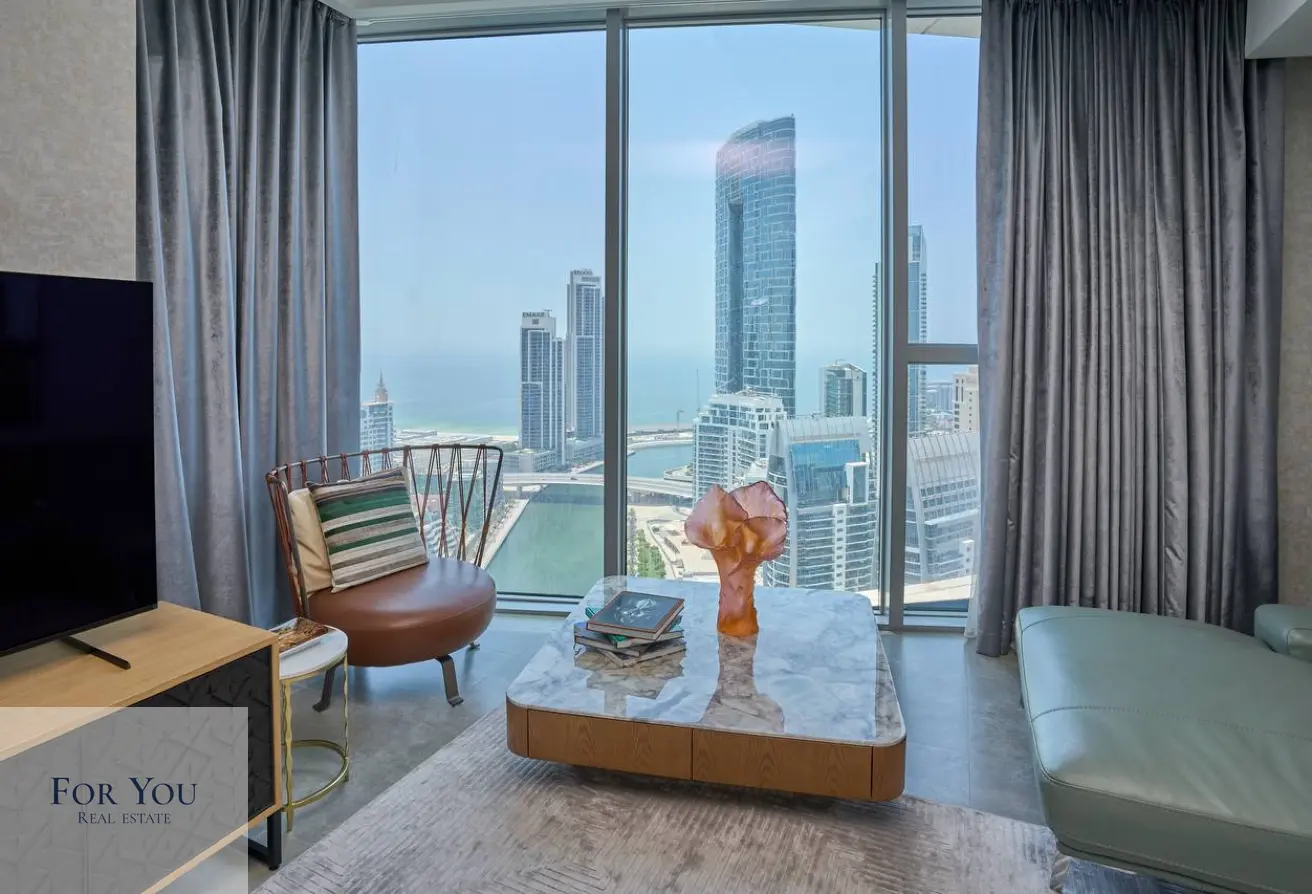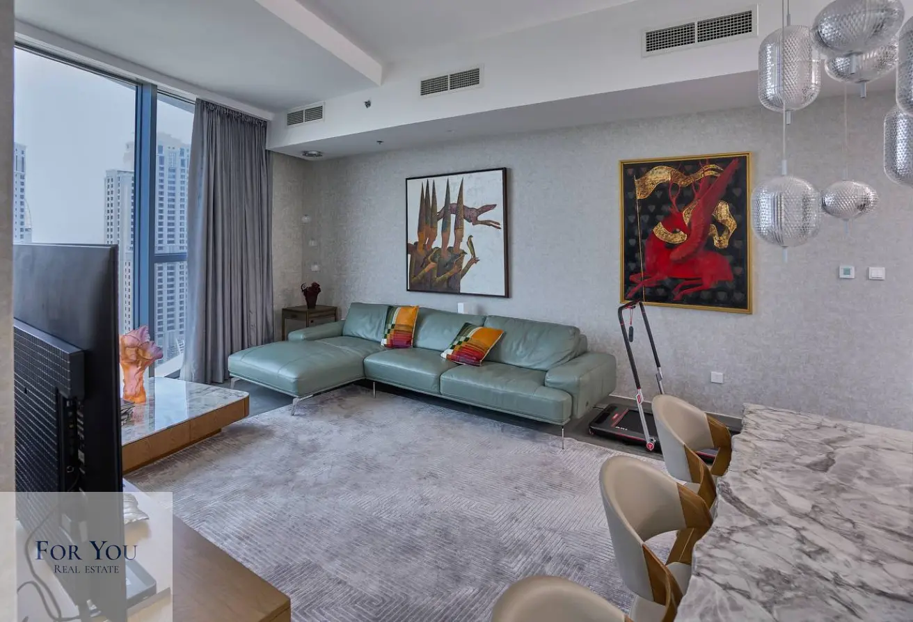 FOR YOU REAL ESTATE is delighted to present this stunning fully furnished two-bedroom apartment in the prestigious Stella Maris development, Dubai Marina.